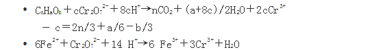 • 方法原理:水樣以K2Cr2O7 為氧化劑,在10.2mol/L硫酸介質中回流氧化后,過量
