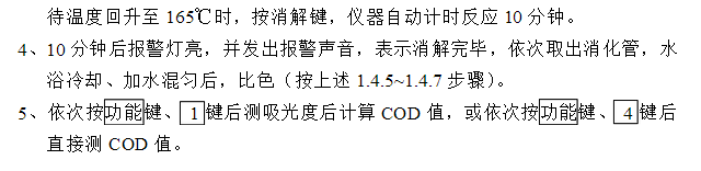 1.5.6 反應管宜用10%的硫酸清洗,不得用重鉻酸鉀洗液及其它合成洗滌劑洗刷,以免鉻化合物或洗滌劑粘附在試管內壁影響測定結果。 1.5.7 冷卻時應仔細操作,防止冷卻水進入反應管或沾污管口、管塞,影響測定結果。