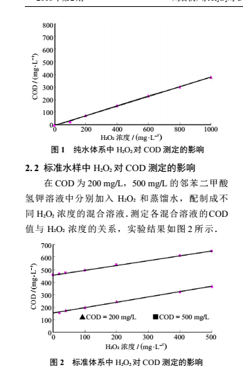 ( 1 ) H2O2 對體系 COD 測定有影響,影響與其濃度呈線性關系.