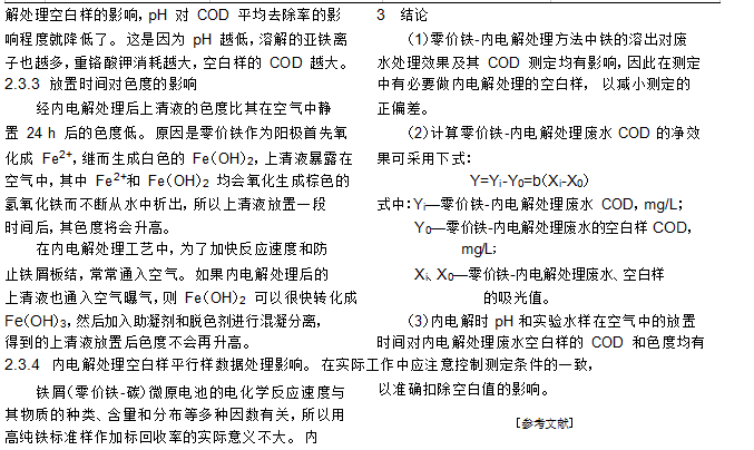 **大,因此零價鐵反應**快,溶解的亞鐵離子也較多;GB 11914—1989 重鉻酸鉀法和 CTL-2 型化學需氧量速測儀測定 COD 中所用的氧化劑都是重鉻酸鉀,可與鐵屑溶出的亞鐵離子反應,使重鉻酸鉀消耗量增大,從而使 COD 測定產生正偏差。反應如下: