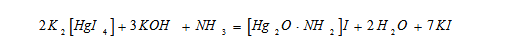 稱取 16.0g氫氧化鈉(NaOH),溶于50ml水中,冷卻**室溫。 稱取7.0g碘化鉀(KI)和10.0g碘化汞(HgI2),溶于水中,然后將此溶液在攪拌下,緩慢加入到上述50ml氫氧化鈉溶液中,用水稀釋**100ml。貯于聚乙烯瓶內,用橡皮塞或聚乙烯蓋子蓋緊,于暗處存放,有效期1年。